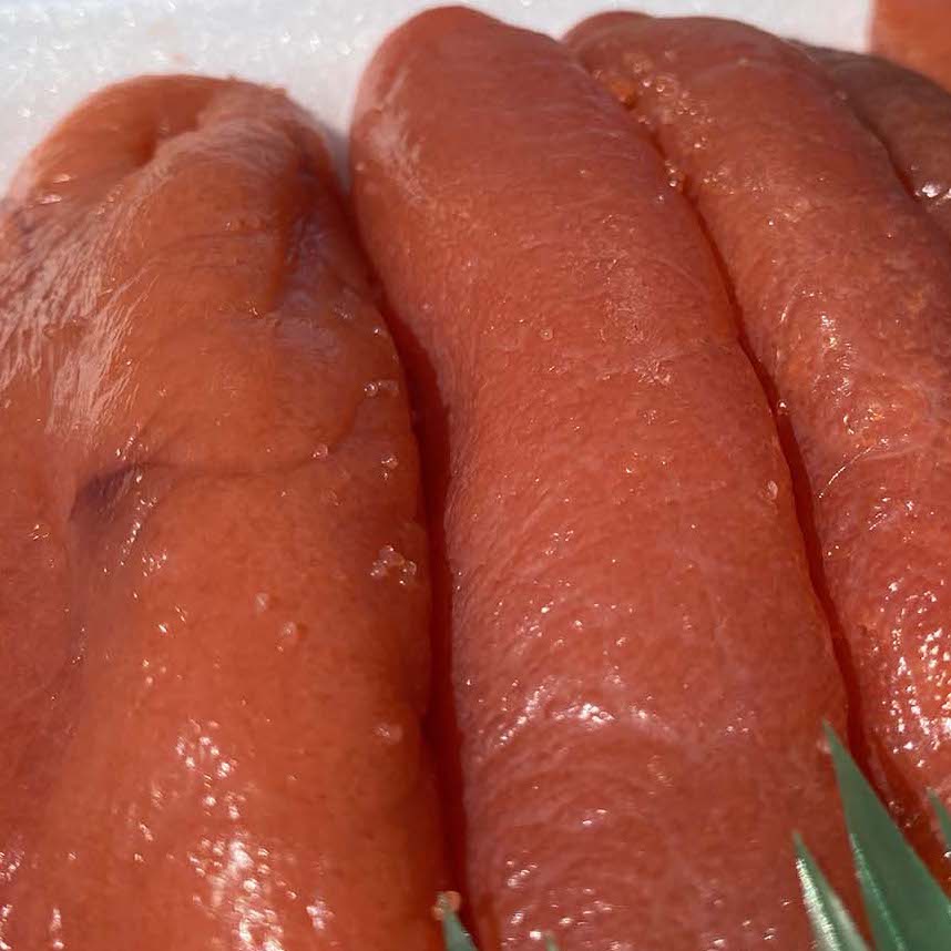 この辛子明太子は原材料となるスケソウダラの卵が完熟した粒が大きいものを使用していて、粒の食感が非常にしっかりしています。ご飯のお供やお酒のつまみに、辛子明太子は様々なお料理にも使えます。こちらの商品は切子ではなく一本ものをし使用しているので、明太子のつぶつぶ感をしっかりと味わうことができます。量も380~400gも入っていて大変お得な商品です。